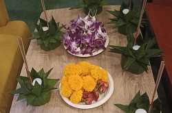 写真は、ロイクラトン体験とタイダンス。ご自身で花で飾り付けをしてオリジナルクラトンを作って、願いをこめてそれぞれ池に流しました。。