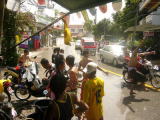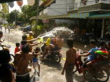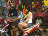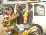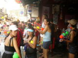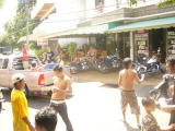バイクで200ピー通りからビーチ通りをグルっと回ってみると荷台つきのピックアップ車に水鉄砲をを持った沢山のチビッコたち(大人も含む)がそこにいる人めがけて水をかけます。トゥクトゥクのなかも道沿いのバーやお店もビニールでカバーしてましたが余り効力はなかったようです。
