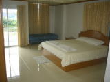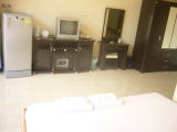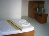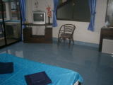 決して新しくはありませんがおもしろいゲストハウス。TVのある部屋とベッドルームが分かれています。大きな冷蔵庫もあるしなんだかアパートみたいです。写真の部屋はローシーズン一泊一室500バーツ。他にも600バーツ、800バーツのお部屋もあります。施設内には大きくはないですがスイミングプールも有。ちょっと便利なゲストハウスです。一ヶ月滞在の割引はないそうです、、、。