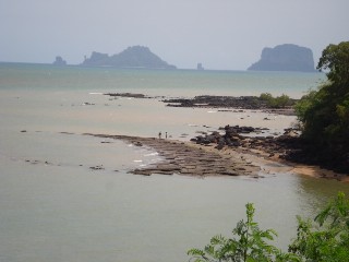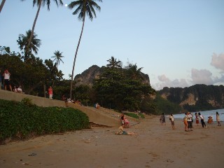 ●クラビーってどんなところ? プーケットから車で約3時間。クラビまで行ってきました。 お隣のパンガー県を通っていくのですが、パンガーに入ったあたりから、プーケット島内では あまり見られない、どーんとそびえる岩がぼこぼこと見えてきます。緑も青々と茂っていて、のど か〜な雰囲気を感じることができます。 クラビで、気になったのがサムロー(三輪)型のバイクタクシー。1台に4人ぐらいまで乗れます。 屋根も付いてます!プーケットではほとんど走ってませんよね〜。 クラビは通常のバイクタクシーより、サムロー型の方が主流なようでした。これがほんとに便利。 ホテル見学時になかなか重宝しました。 パワーはあまりないけれど、アオナン内を走るなら 充分。料金は1人アオナン内なら20バーツ! お手頃で乗り心地も良かったです。プーケットにも走ればいいのに・・・。 クラビは全体的に素朴で、派手さはあまりないけれど、どこか落ち着く雰囲気があります。 最近はプーケットの後にクラビへ移動する人も少しずつ増えてきているので、これから人気が 出てくるのではないでしょうか。 BY きんちょ 今回僕は生まれて初めてクラビ県に行きました。そしていつも一緒に働いてるスタッフ全員、 運転手のチャイさんと一緒ということで凄く新鮮でした。 クラビー県の先入観としましては、「観光地」、「リゾート」、「ピピ島もクラビ県」等であとはなーん となくプーケットに似てるのかなぁなんて思っていました。 宿泊したのはアオナンビーチ。ここももちろん旅行者向けのお店が沢山並んだビーチで 高級なホテルが沢山あるビーチです。しかし最初に一人でビーチ通りを歩いた感想はのんびり、 プーケットでいうとカタ、カロンみたいな感じだけどもっとローカルな匂いが漂うビーチ。 そして断崖絶壁の岩肌がいたる方角に見えてダイナミックな自然。 そして静か。。夜もちらっと街を歩いてみましたら22時過ぎにはビーチ通りのお店は閉まりかけて いました。アオナンビーチはこのビーチ通りのお土産屋さんの間を中へ進んでいくとビアバーが 並んでいるんです。しかしこれもパトンのビアバーみたいに大音量ではなく丁度良い感じで レゲエやロックが流れています。 そうです、一日を通してゆっくりと時間が流れた気持ちいビーチでした。 しかし5月ということでクラビもオフシーズン。乾季にはやっぱアオナンは欧米人で賑やかな街に なるそうです。 夜のみんなとの食事は海辺のシーフードレストラン。ビックリするくらいタイ人率が高かったです。 これもタイの連休と重なっていた影響かと思われますが料理はとても美味しく満腹になるまで 頂きました。 二日目、午前中はクラビを代表するアイランドホッピング、午後からの予定もありパッケージ ツアーではなくロングテールボートチャーターで船の運転手と二人きりで行ってきました。 クラビ特有の地形と自然、この時期でもたくさんの魚を見ることができました。 このボートチャーターについてはまた詳しくご紹介します。。 午後からはみんなとクラビタウンツアー。スサンホイ(貝の化石)海岸、タイガーケイブ寺院等を 回り夕食を食べてプーケットタウンへ帰宅という感じだったんですが、このタイガーケイブで は皆とは別行動。僕とさくらこさんの長男M君の二人はこの寺院のビューポイントへと向かい 全ての時間を費やすことに、、。 1237段の階段を登り、クラビタウンの壮大な自然、樹林、岩肌、街を眺めてまた1237段の 階段をおり、自分の体力のなさを思い知らされましたが、こちらも詳しくは別枠に。。 総評しましてもまた必ず来たいと思うような素晴らしい街、自然、リゾート地でした。 今回は一泊でも内容はとても充実してましたが、是非何泊かして ゆったりとクラビーを満喫というのもやってみたいですね。 今後もピピ島&クラビ情報ブログにアップして街の様子などもご紹介していきますので よろしくお願いします。 BY JAJA ==================== ●アオナンビーチ クラビで最も観光客が多く、賑やかなのは「アオナンビーチ」です。 雰囲気は、プーケットのパトンビーチに似ており、ビーチ沿いの通りには、お土産やさんや レストラン、コンビニ、マッサージ屋さん、ツアーカウンターなどが並んでいます。 ビーチ通りの繁華街は、大体1キロ程度だと思います。 この通りから、ビーチはちょっと下るような形になっています。 サンセットの時間帯に、ビーチを散歩してみましたが、ビーチチェアーなどは全くなく、 とても素朴な感じがしました。ビーチを縁取るのは、クラビーの風景には欠かせない、 小高い緑の山々です。 夕日は、海面には落ちず、ビーチの端っこの林のほうに落ちていきます。 この時間帯は、地元の人や、観光客もたくさんサンセットを楽しみに、ビーチに出ていました。 ビーチの目の前には、いくつかのホテルのレストランやバーが 高床式のような形で作られています。 クラビーリゾート