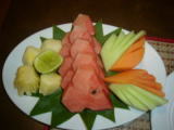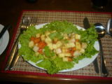 最初に出てきたのがスパイシーフルーツサラダ。酸味の効いた美味しいドレッシングと細かく切られたフルーツ。野菜サラダとは違ってドレッシングのスパイスがフルーツの甘さを引き立てます。フルーツも細かくて食べやすかったです。