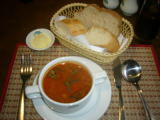 次はミネストローネ。ミネストローネといったらトマトの入った赤くて色んな野菜が細かく切られて入っててコンソメの美味しいスープだと思っていました。実際そうでした。