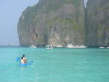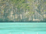 約45分の最初の航海はピピ.レ島を目指します。午前中のアクティビティはこの島で体験することになります。まず最初に、いきなりマヤ「ビーチ」です。今や有名な映画の撮影スポットですね。なんて言って実は僕映画「ザ ビーチ」見てないんです。でも他の旅行者の方が言ってました、「映画と一緒だぁ」て。その海、覗く景色、綺麗なビーチには圧巻ですよ。スイミングプールみたいに綺麗な海、小さな魚も沢山います。変な言い方ですが小麦粉の様に白くきめ細やかな砂、歩いても手にとってもジッと見つめてしまいます。こんな自然があるんですね、無人島って。このツアー最初に訪れるビーチがここなのでみんな興奮するはずです。