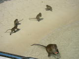モンキービーチです。ここには上陸せずにビーチの浅瀬でサルを見る?お猿さんは本当にいるのでしょうか。ガイドさんに聞くと「確かではないけどいるよ」と言われたので不安でしたが、ビーチに着くと聞こえてくる「キー!キー!」。いました。サル。ここで本当は参加者が食べる為に用意されたフルーツを投げます。もちろん投げなくてもいいですけど、、、バナナ、スイカ、パイナップルをホイっと投げると上手にキャッチしたりしなかったり。。同じサルにばかりフルーツをあげてると喧嘩になるのでみんなにあげましょう。