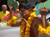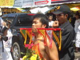 パトンビーチに住んではいますが、やれ祭りがあれば夜でも早朝でもタウンへ行ってしまう僕は中華寺院のメッカ、ジュツイ寺院や、火の中を歩いたり、刃物の上を歩く至極の儀式があるサパンヒンへ向かい、最終日のパレードもジュツイのパレード前の儀式から