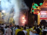一番大きな神輿に火が焚かれ炎があがり鐘がなり、爆竹が鳴りパレードがスタート