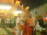 祭りの儀式。各地区にある中国寺院で日時は順で行われるお祭りの儀式。祭りに参加している人の中でも選ばれたものが行うとされている色んな儀式。本堂では身体を震わせて頭の上から黒い布をかぶり、悟りを得た人から何か言葉を受け、自身に仏が宿るような今までに見たことがない様な、まるで催眠術のような事をやってました。