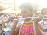 各人が頬に刀や、色んなもの刺して行進したり、燃える炭の上を歩いて渡り、刃物の何本も立った道を歩いたり、まるでサーカスなんですが、これ何十人も何百人も、普段は普通の人がこれやってるんですよね。
