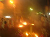 21時過ぎころからサパンヒンにパレードがやってきて深夜過ぎの祭りがあけるまでずっと、土砂降りの雨を思わせる爆竹の音が3,4時間なり続けます。